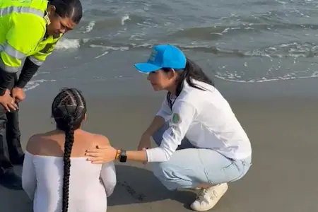 Empapada hasta las rodillas, le gritó con la fuerza y la ternura que caben en una voz que quiere salvar una vida. Desde la orilla de la playa, una funcionaria de la Secretaría de Tránsito también se unió al rescate. Ambas hablaron, insistieron, suplicaron y ayudaron a salir del agua a la joven.