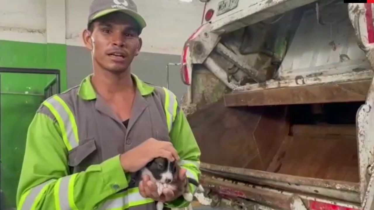 Los operarios de la empresa Urbaser rescataron a un cachorro que fue abandonado en una bolsa de basura en el barrio Minuto de Dios en el occidente de Montería.