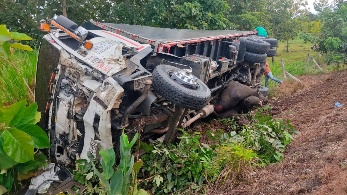 Un grupo de semovientes bufalinos fallecieron al volcarse camión en el que eran transportados en el departamento de Córdoba.