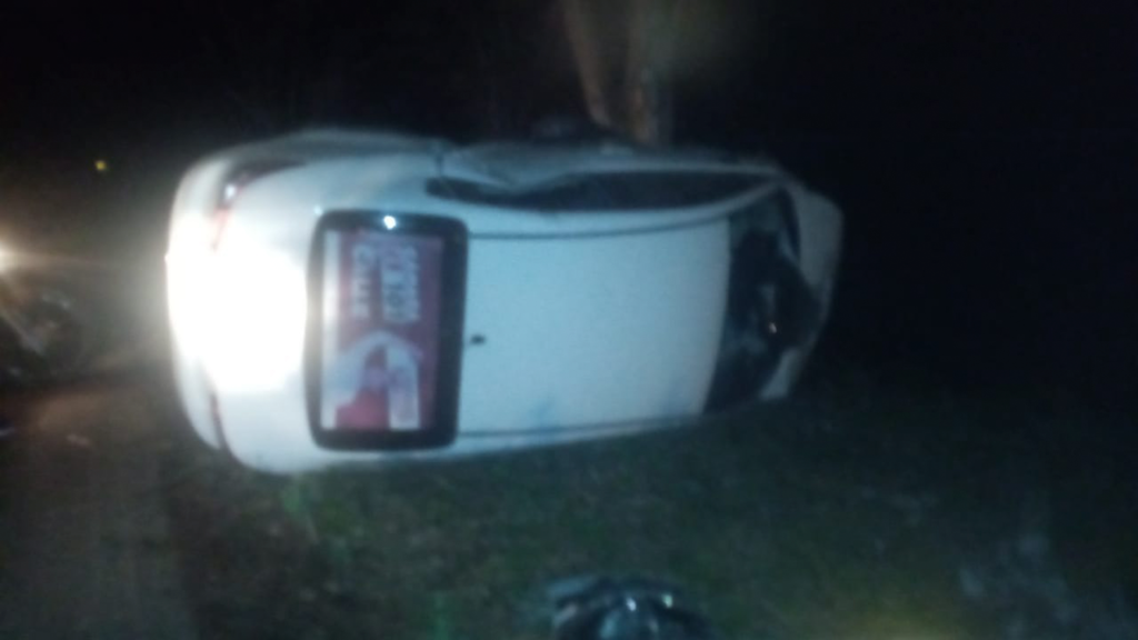 Un posible micro sueño lo hizo perder el control del automotor que terminó volcado, pero los mecanismos de seguridad del vehículo (airbag) se activaron al momento del impacto con los árboles que hay a orillas de carretera y lo protegió.