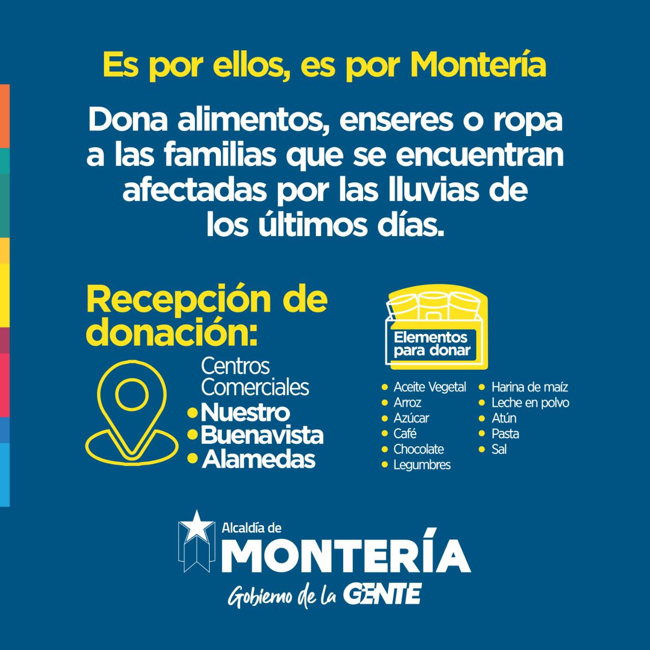 Con el ánimo de colaborar con alimentos, ropa y demás utensilios se habilitaron tres puntos para que los monterianos puedan hacer sus donaciones. Estos están ubicados en los Centros Comerciales: Alamedas, El Nuestro y Buenavista.