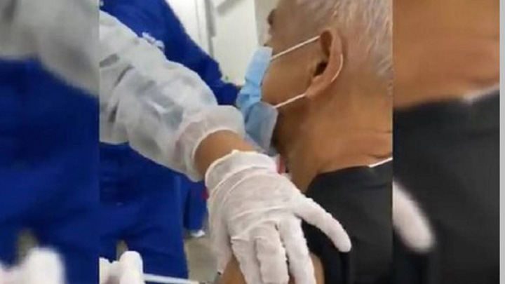 El hecho ocurrió durante la aplicación de la vacuna contra la COVID -19 a Mauricio Zárate Ariza, de 77 años, en el estadio Romelio Martínez.