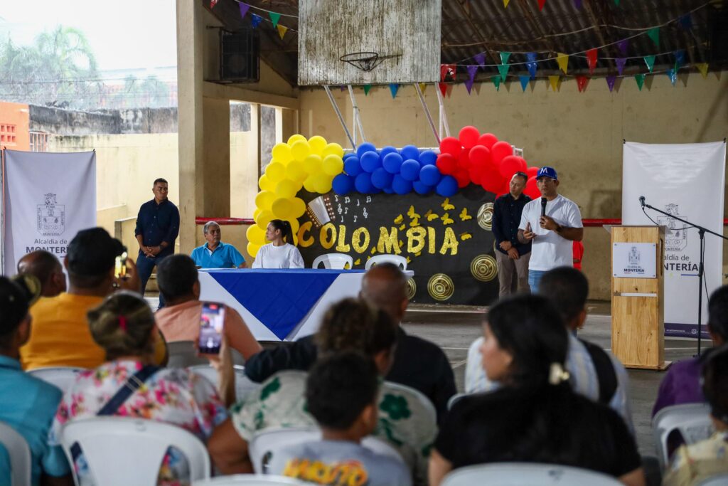 Un grupo de líderes comunales y habitantes del sector, que desafiaron la lluvia para cumplir esta cita con el progreso, escucharon la explicación del alcalde y funcionarios de la Secretaría de Infraestructura de Montería, en el polideportivo de la IE Cristóbal Colón, durante el acto de Primera Piedra. Precisamente, la pavimentación que se hará en la diagonal 12 arranca en un costado del mencionado centro educativo.