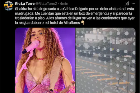 Durante la madrugada, medios locales informaron que Shakira había sido ingresada a la Clínica Delgado por un cuadro abdominal. Según versiones no oficiales, la artista habría sido sometida a una endoscopia, aunque en un principio se aseguró que esto no afectaría su concierto. Sin embargo, la incertidumbre creció cuando imágenes de las camionetas de su equipo estacionadas fuera del centro médico comenzaron a circular en redes sociales, lo que indicaba que la cantante llevaba varias horas en el lugar.