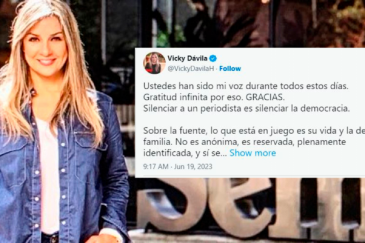 Silenciar a un periodista es silenciar la democracia. Seguiré inquebrantable con mi compromiso de informar como directora de SEMANA, siendo leal solo a la verdad, a mis principios y a los lectores y seguidores”, dijo Vicky confirmando que sigue al frente del medio y desmintiendo rumores.