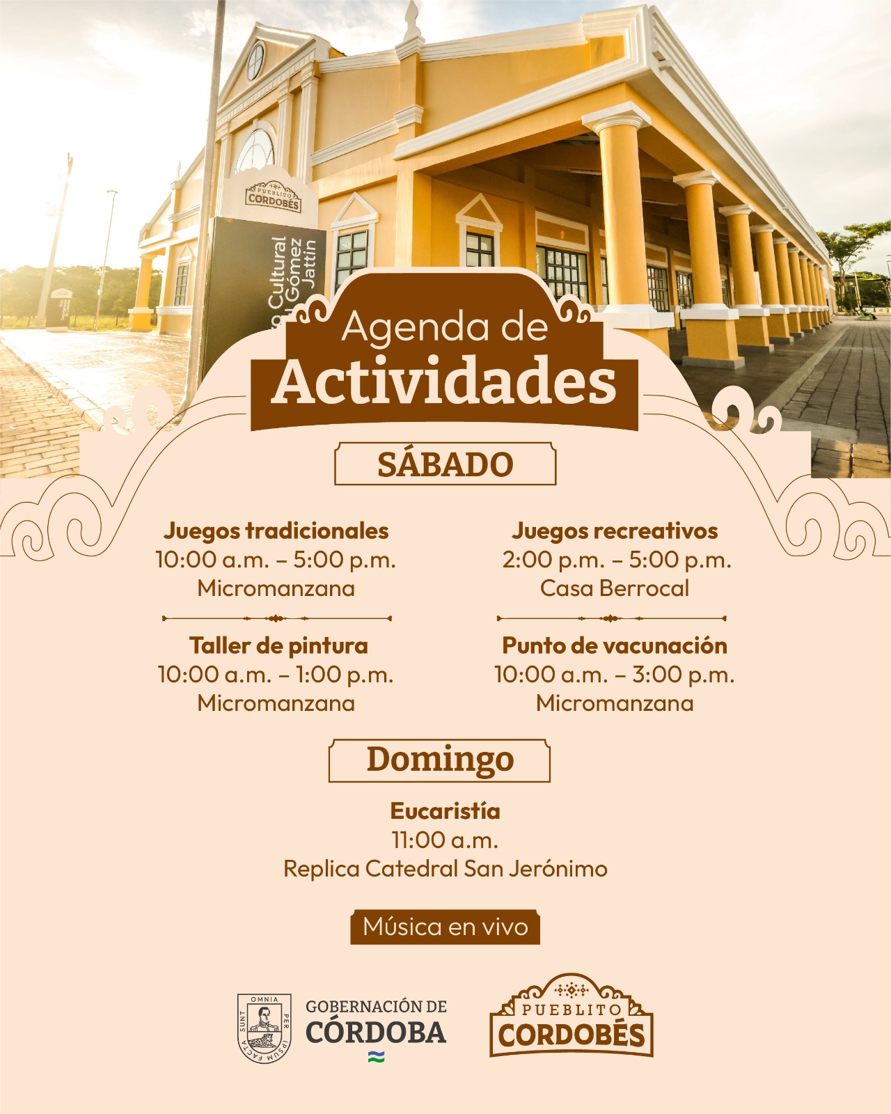 Montería, 12 de julio de 2025. La Gobernación de Córdoba extiende una invitación a toda la ciudadanía para disfrutar de un fin de semana lleno de cultura, tradición y alegría en el Pueblito Cordobés, ubicado en el coliseo de Ferias Miguel Villamil Muñoz.