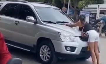 El escándalo comenzó cuando la mujer, al encontrar a su esposo en compañía de otra mujer dentro del vehículo, decidió tomar medidas drásticas. Con determinación, se subió al capó del auto mientras gritaba: «¡Bájeme a esa… del carro!».