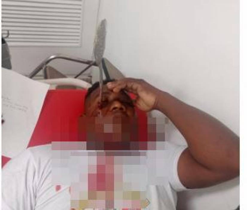 No son claros los motivos por los que Yesid Arnedo y uno de sus sobrinos protagonizaron una riña en el festejo, lo cierto es que Arnedo terminó con un cucharón clavado en el pómulo derecho, a solo unos centímetros del ojo.