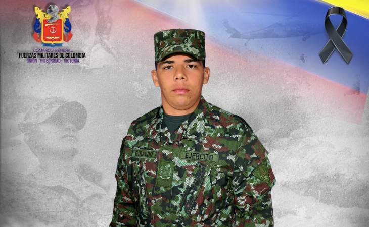 Como Jean Carlos Giraldo fue identificado el soldado oriundo del departamento de Córdoba que murió por un disparo propinado por un francotirador, presuntamente del ELN, mientras realizaba labores de vigilancia en el Batallón Especial Energético y Vial n.º 10, ubicado en El Carmen, Norte de Santander, durante la mañana del miércoles 6 de noviembre.