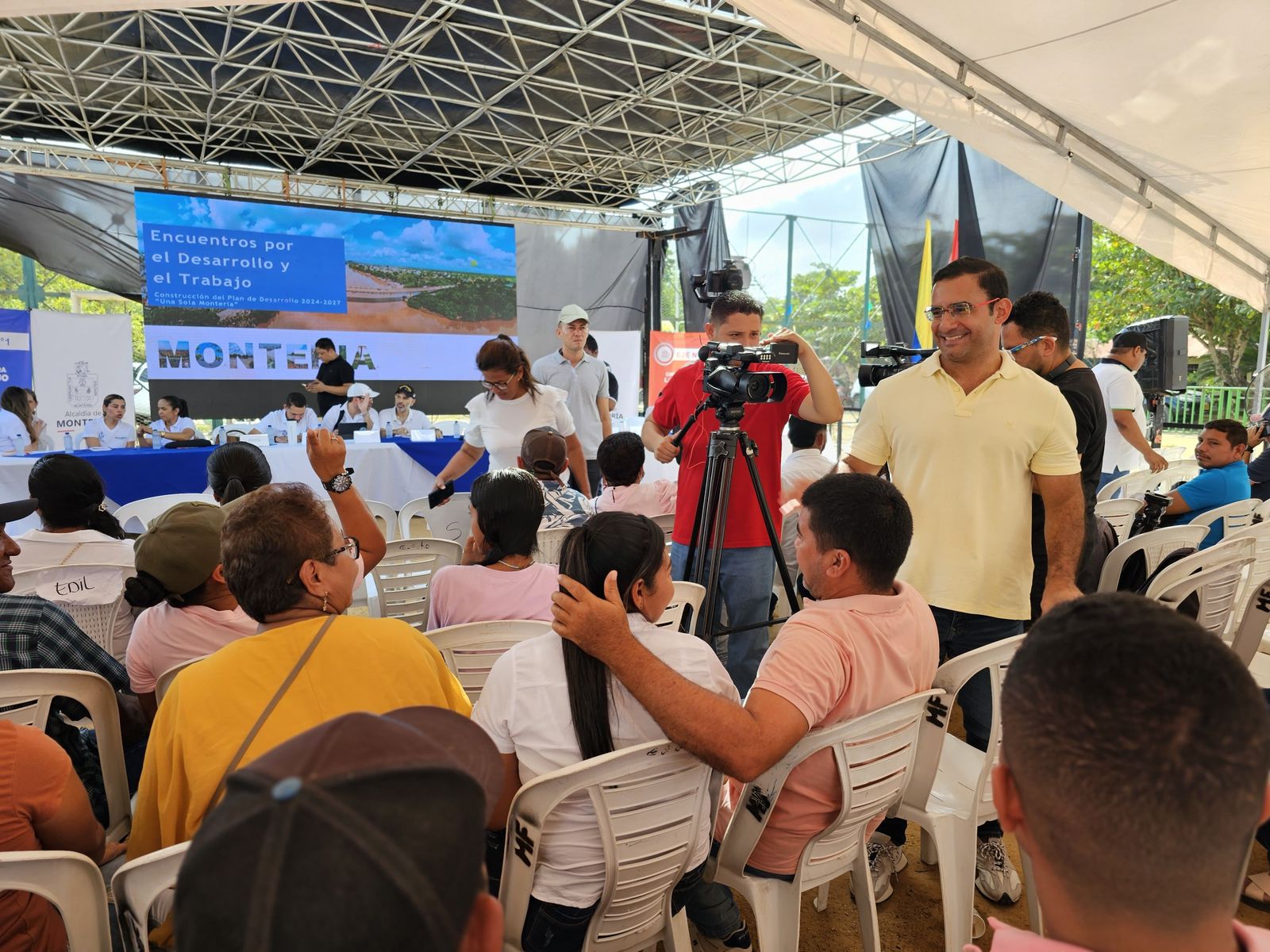 Montería, 21 de enero de 2024. Los habitantes del corregimiento Caño Viejo Palotal y sus veredas recibieron hoy al alcalde Hugo Kerguelén García, quien llegó hasta la cancha central de la zona junto a su equipo de gobierno, para conocer las propuestas e inquietudes de los residentes y, a partir de ellas, buscar solución a las necesidades, incluyéndolas en el Plan de Desarrollo 2024 – 2027.