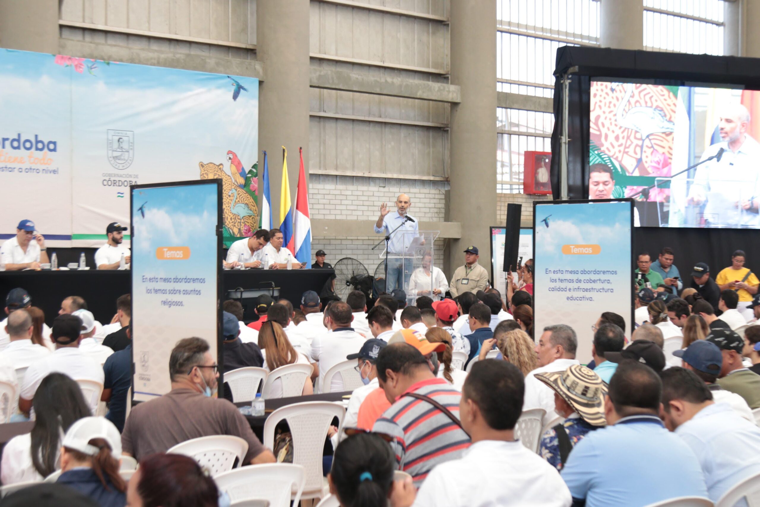 Montería, 24 de febrero de 2024. En el taller de construcción del Plan de Desarrollo Departamental, realizado en el Coliseo Miguel “Happy” Lora, se ratificó el compromiso de invertir el 30 % del presupuesto departamental en Montería.