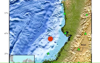 El temblor hoy fue reportado a las 7:49 p.m., y se produjo cerca de los municipios de El Litoral del San Juan (Chocó) a 97 km, Timbiquí (Cauca) a 115 km, Guapi (Cauca) a 131 km, según el Servicio Geológico Colombiano.
