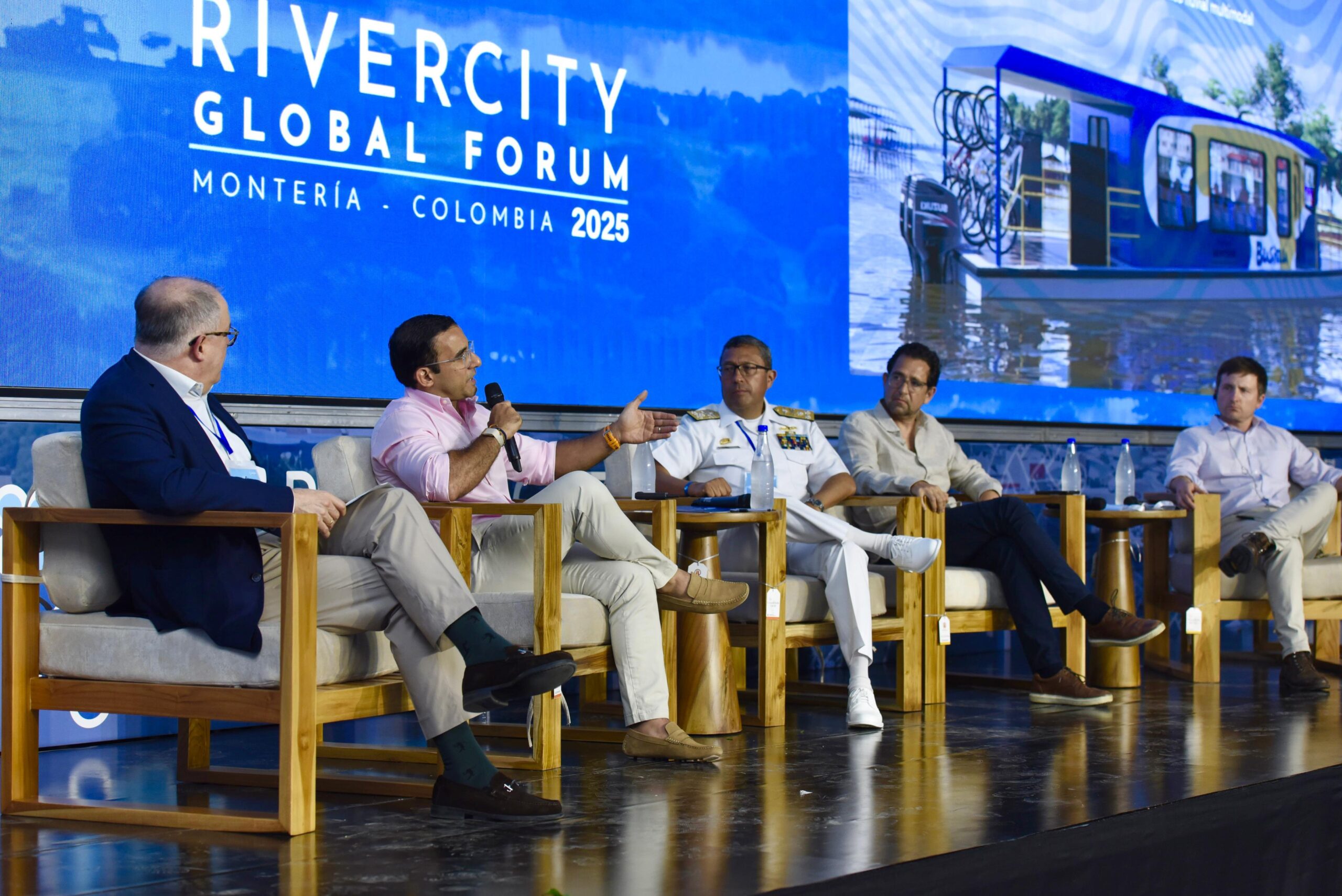 Montería, 28 de agosto de 2025. En el panel ‘El río como eje transformador y estruturador de la movilidad’, en el Rivercity Global Forum, el alcalde de Montería Hugo Kerguelén García expresó que su aspiración es que Businú se convierta a futuro en un medio para comunicarse de manera segura con las veredas y corregimientos más lejanos, que están a orillas del afluente.