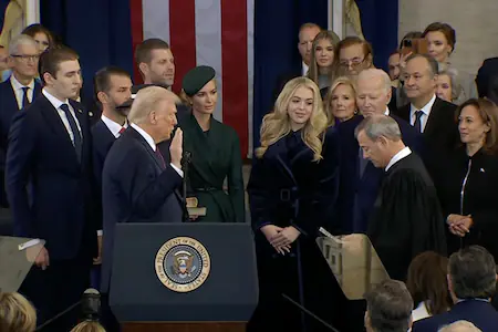 El presidente de EE.UU., Donald Trump, tomó hoy lunes el juramento de su mandato en el Capitolio. El vicepresidente J.D. Vance también toma juramento. Oficialmente, terminó la era Biden y comienza el nuevo gobierno en Estados Unidos.