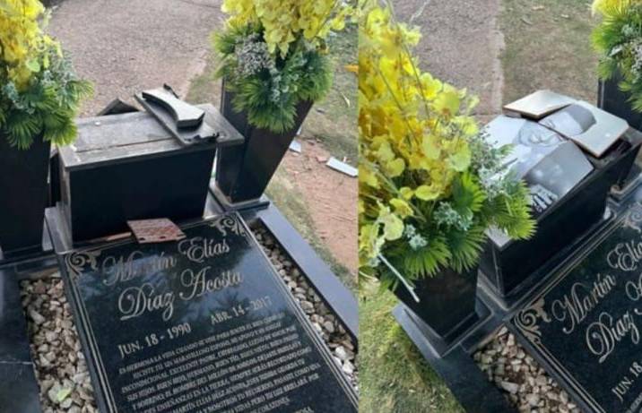 «Hoy encuentro la tumba de Martín en el estado que puede observar en las fotos, algo que me llena de mucha tristeza e indignación». Y agregó que no es la primera vez que pasa. «Usualmente, las personas se roban las flores, las piedras, se van a tomar allá, o se sientan y apoyan sobre la tumba para tomarse fotos. No es justo, exigimos respeto».