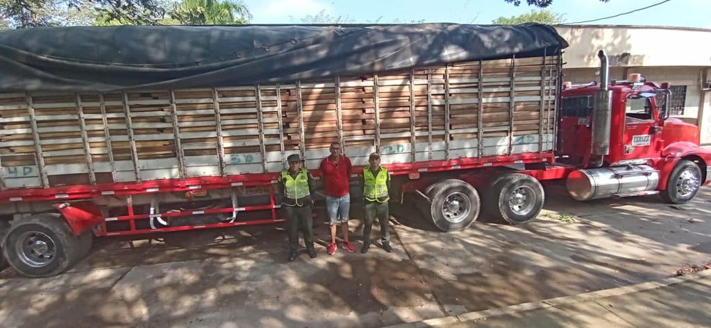 De acuerdo con la información entregada por la institución policial, los uniformados se encontraban adelantando planes de control cuando le hicieron la señal de pare a un camión tipo estaca. Al revisarlo, advirtieron que se estaban movilizando 33 metros cúbicos de madera.