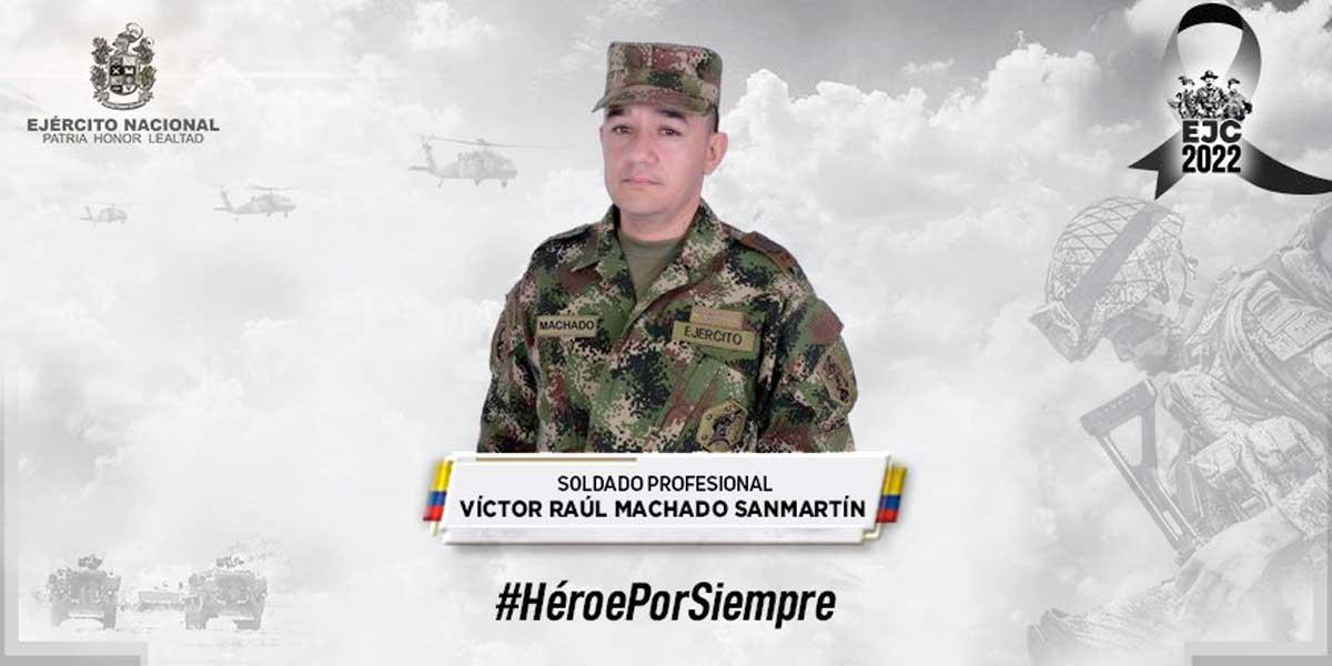 Tras unos minutos de fuego cruzado, el soldado Víctor Raúl Machado Sanmartin, que pertenecía al Batallón Nutibara, fue herido de gravedad y murió de forma inmediata pese a que sus compañeros lo remitieron a un centro de salud.