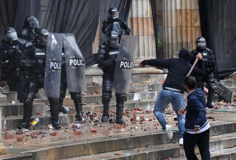Sin embargo, los fuertes enfrentamientos entre manifestantes violentos y miembros del Esmad continuaron en la Plaza de Bolívar en esta nueva jornada del paro nacional.