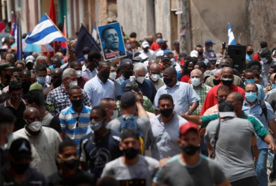 El presidente de Cuba, Miguel Díaz-Canel, instó este domingo a sus partidarios a salir a las calles listos para el «combate», como respuesta a las protestas pacíficas espontáneas surgidas este domingo contra su Gobierno en diferentes puntos del país.