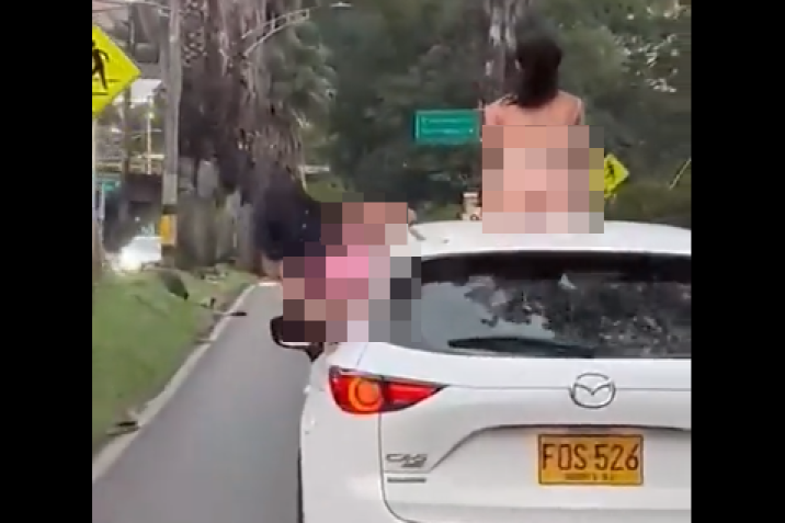 En redes sociales se hizo viral un video de exhibicionismo en una vía de Medellín, las imágenes fueron captadas desde un carro que iba atrás.
