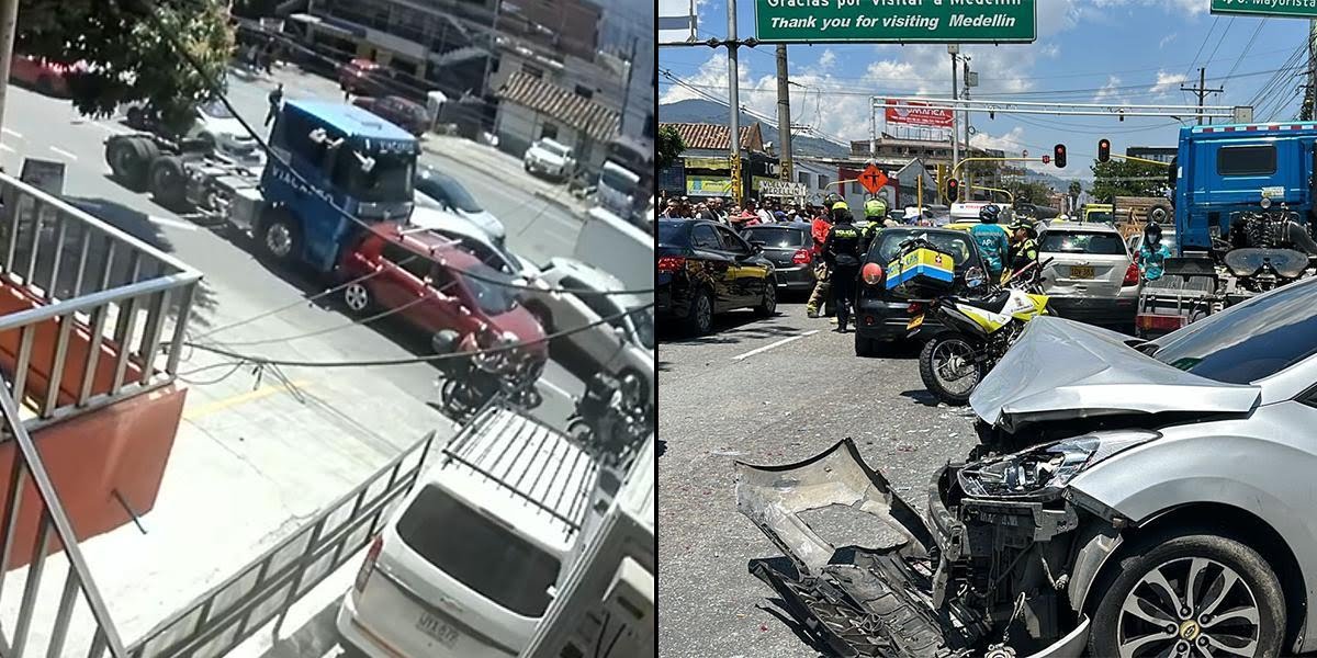 La colisión múltiple, ocurrida en la avenida Guayabal, fue causada por el robo de un tractocamión cuyo conductor perdió el control del vehículo.