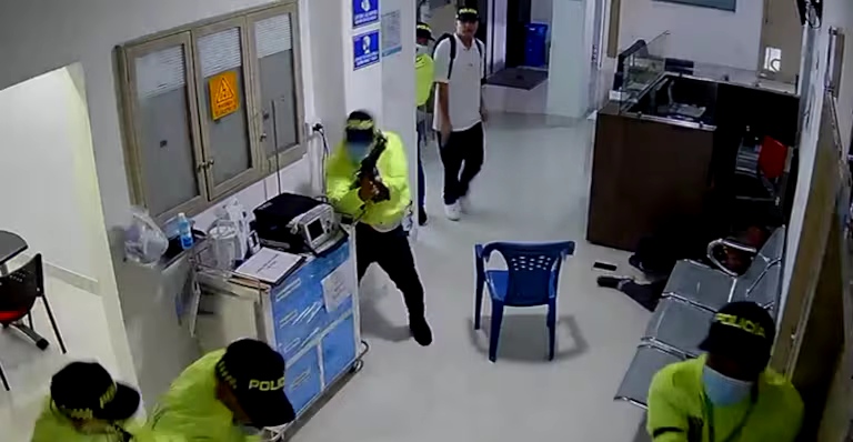Una cámara de seguridad del centro de salud grabó el momento. En las imágenes se nota cómo los hombres entraron al sitio, ubicado en la calle 80 con carrera 47, vestidos con lo que parecían uniformes de la Sijin. Se observa que en ese momento atacan a tiros a los hombres del esquema de seguridad de Alfonso López.